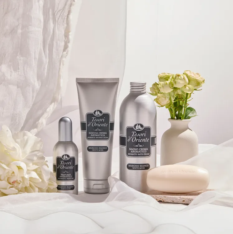 Il diffusore aromatico con bastoncini sprigiona lentamente e in modo costante la sofisticata fragranza del Muschio Bianco.