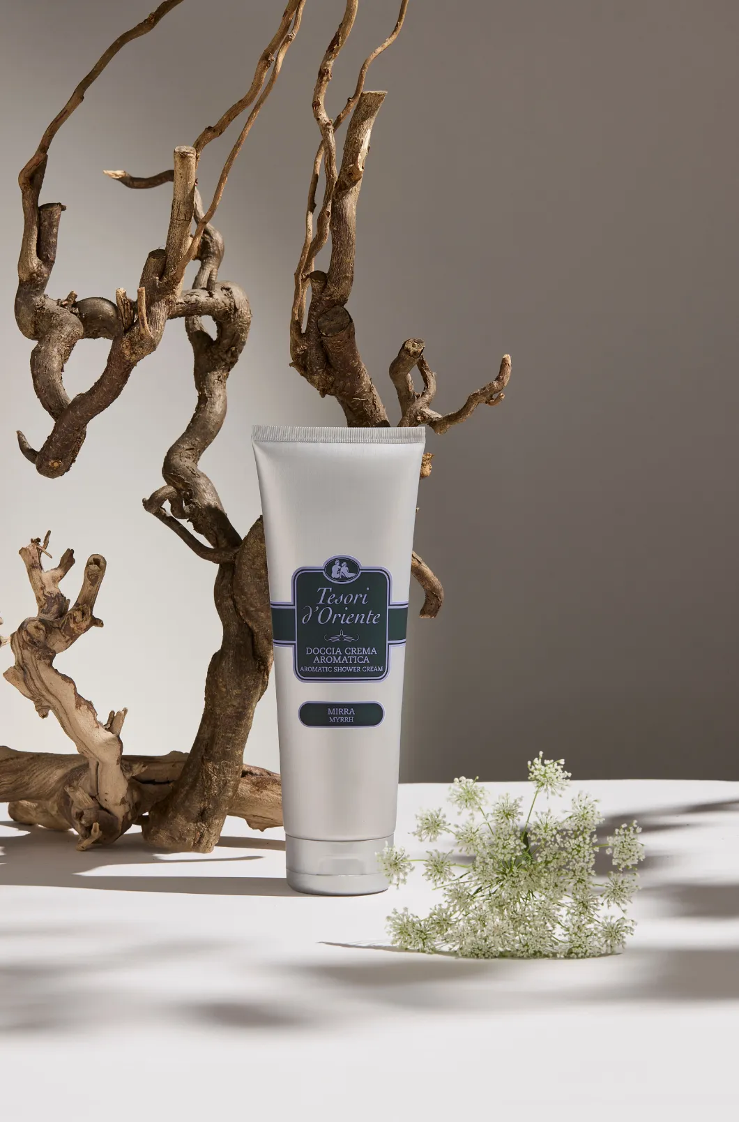Il Doccia Crema Mirra avvolge il corpo in una carezza cremosa e profumata, arricchita dalla leggendaria resina di mirra.