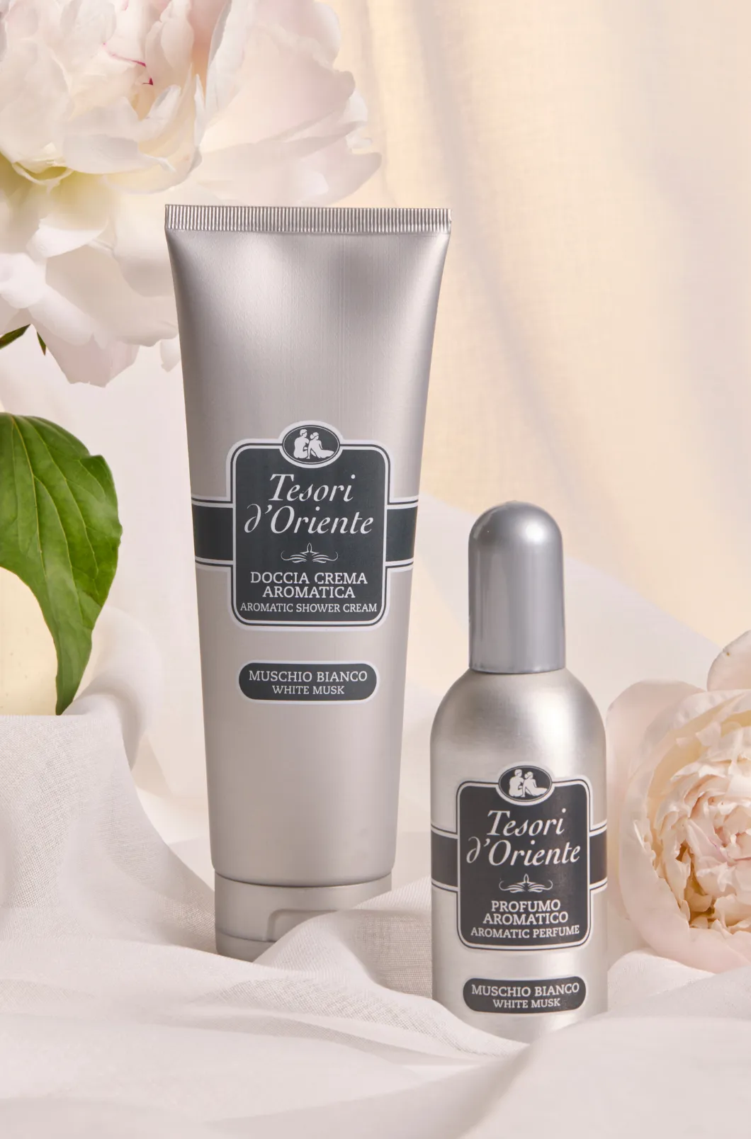 Un aroma raffinato e morbido dal forte potere evocativo che si apre in una soffice crema detergente e coccola la pelle e i sensi.