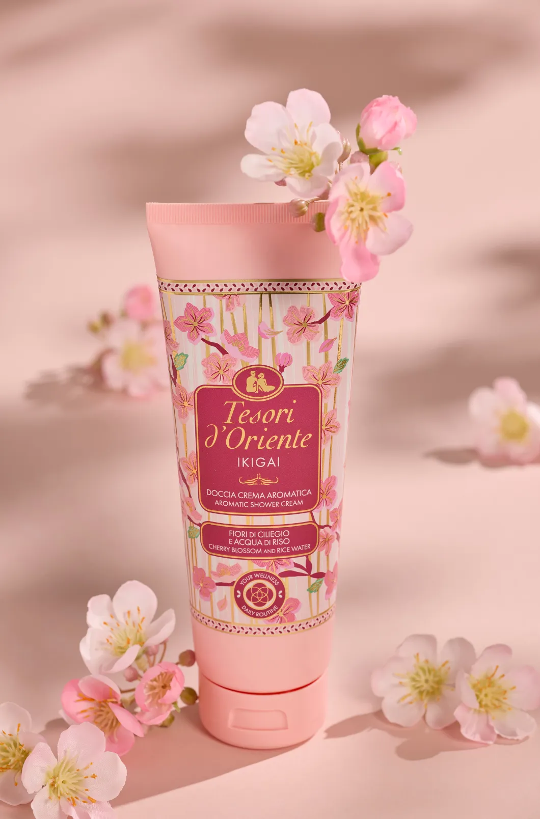 Formulato con Acqua di riso e arricchito con l’essenza inebriante dei Fiori di ciliegio.