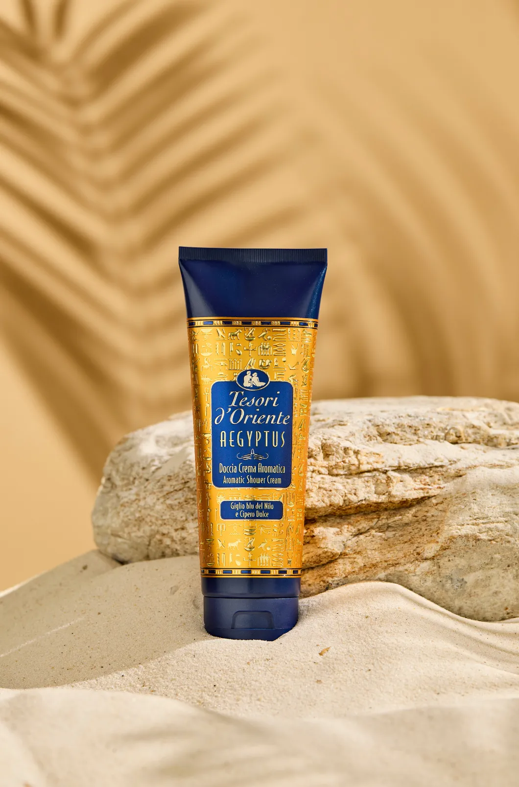 Il Doccia Crema Aegyptus regala un momento di puro benessere, ispirato alla maestosità di una civiltà millenaria.