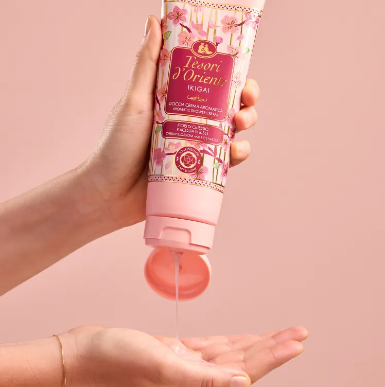 Formulato con Acqua di riso e arricchito con l’essenza inebriante dei Fiori di ciliegio, trasforma la doccia quotidiana in un’esperienza di puro benessere.