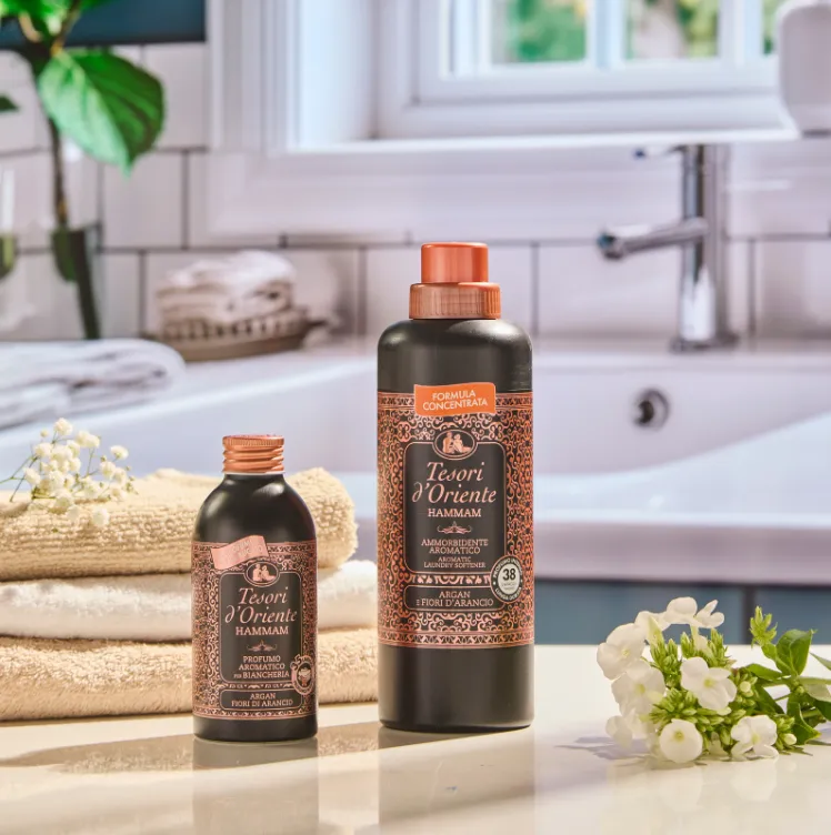 Un bouquet fiorito e avvolgente, impreziosito dall’oro liquido dell’Olio di Argan e dalla luminosità dei Fiori d’Arancio, diffonde sui tessuti una fragranza inconfondibile, sensuale e rilassante.