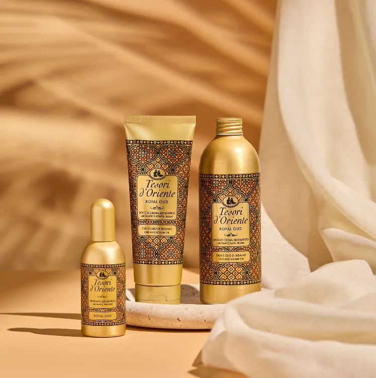 Un morbido intreccio di essenze di fiori orientali e preziose spezie dove l'inconfondibile profumo del Legno di Oud si fonde nelle note sensuali dell'Ambra. Un avvolgente connubio che dà vita ad una fragranza che cattura l'attimo e che rimane impressa sulla pelle e nei ricordi.