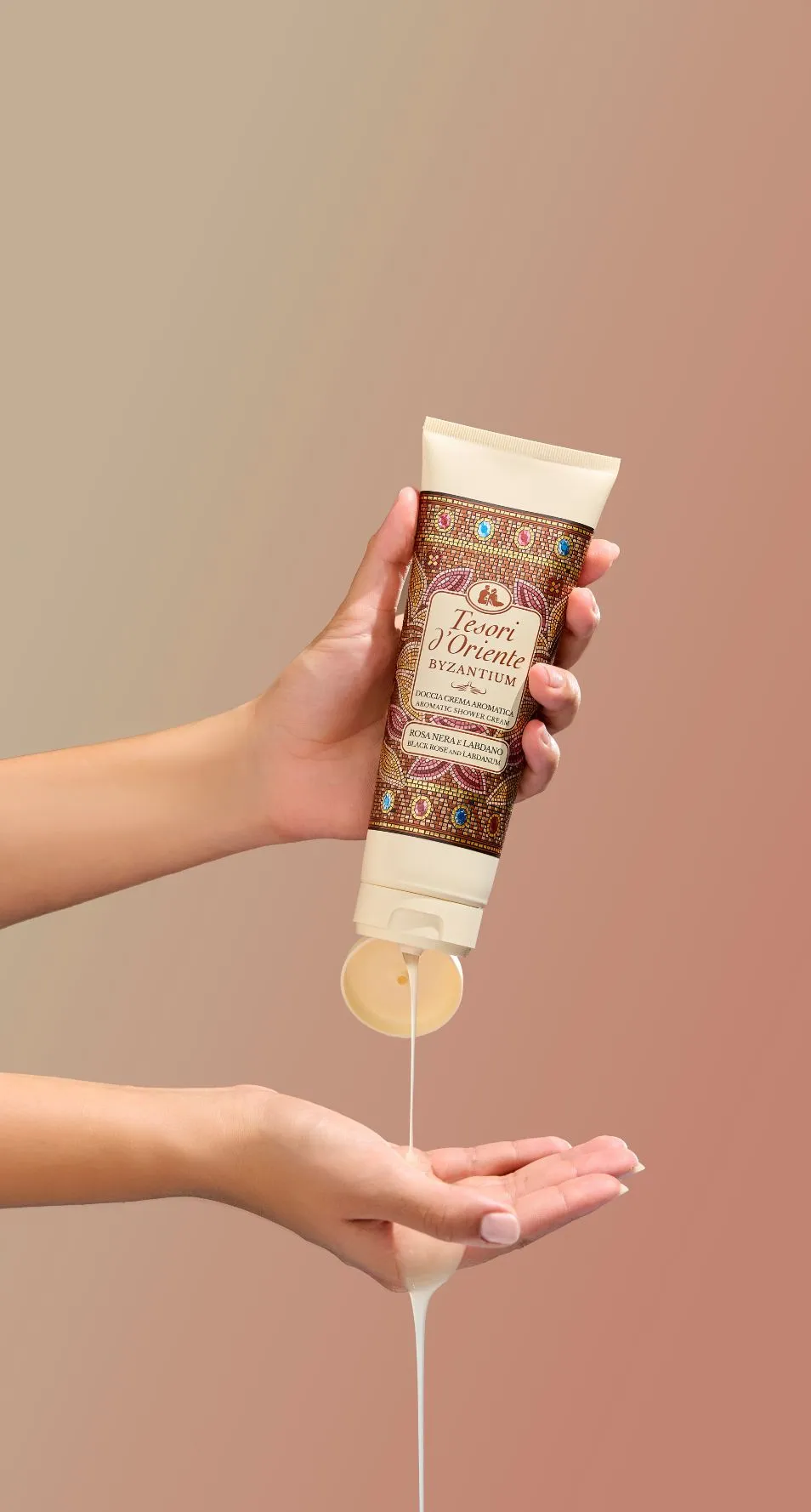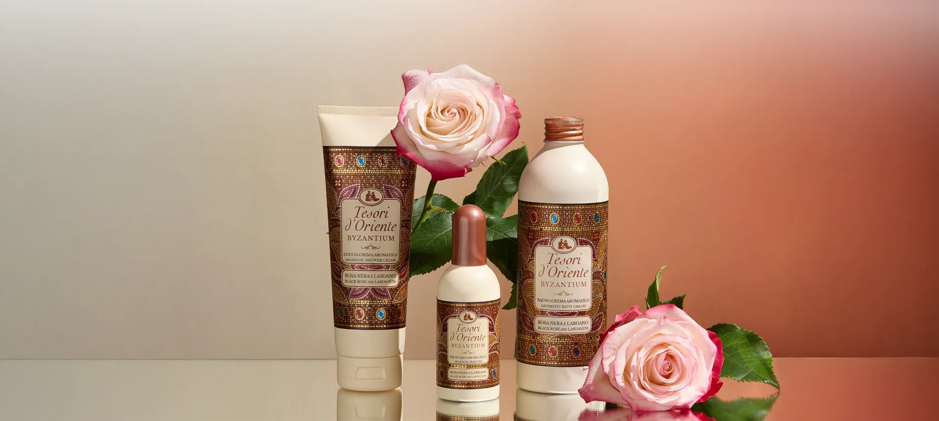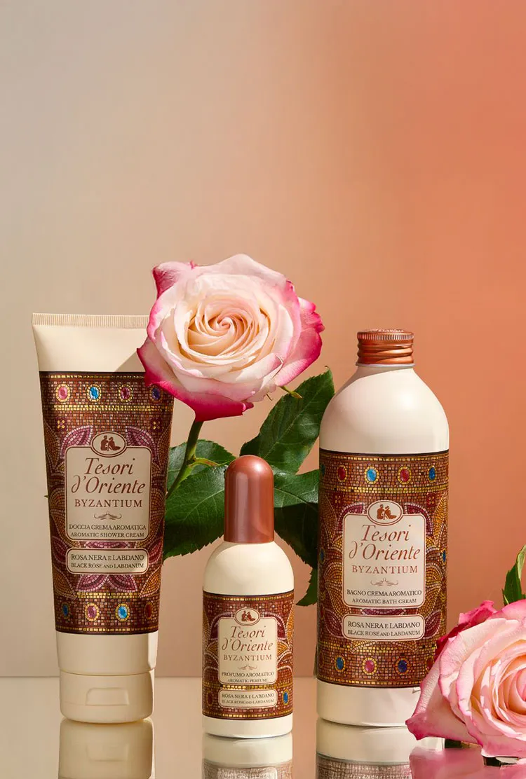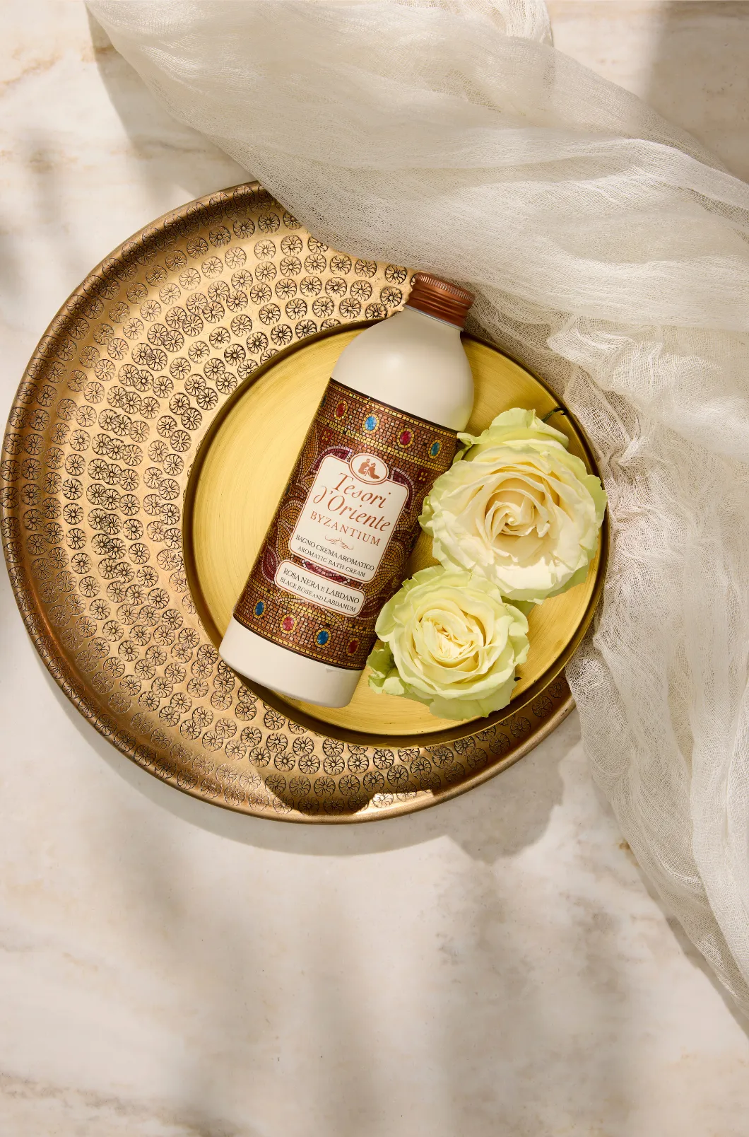 Un viaggio immaginario nella leggendaria città di Bisanzio, l’attuale Instabul, tra i suoi sontuosi palazzi illuminati da riverberi d’oro e pietre preziose e pervasi da profumi provenienti dai fiori più rari e da resine pregiate. La corte imperiale di Bisanzio è da sempre considerata un’inesauribile fonte di ispirazione per i decori dei palazzi, i mosaici e i preziosi gioielli, nonché per aver diffuso in tutto l’Occidente le antichissime tecniche di profumeria ed esclusivi rituali di bellezza.