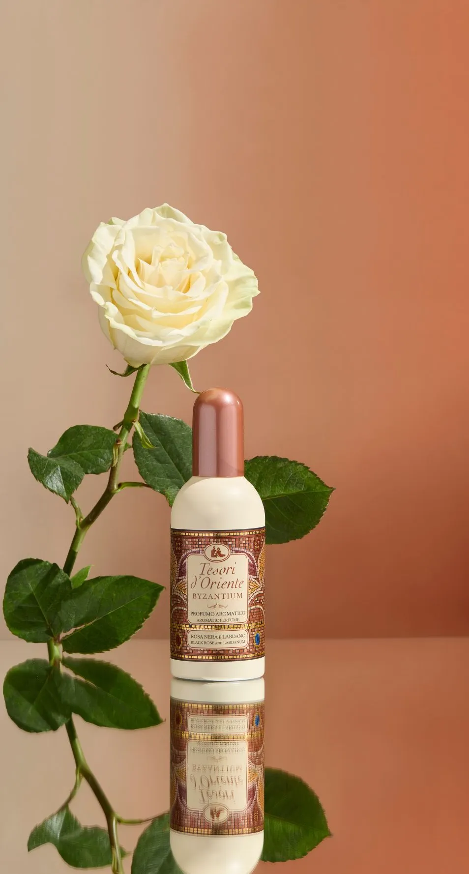 Un profumo sognante e prezioso. La rosa, nella sua forma più rara e misteriosa, è accarezzata dalle calde note del Labdano per dar luogo a un'essenza affascinante e sfaccettata, come un prezioso mosaico bizantino.