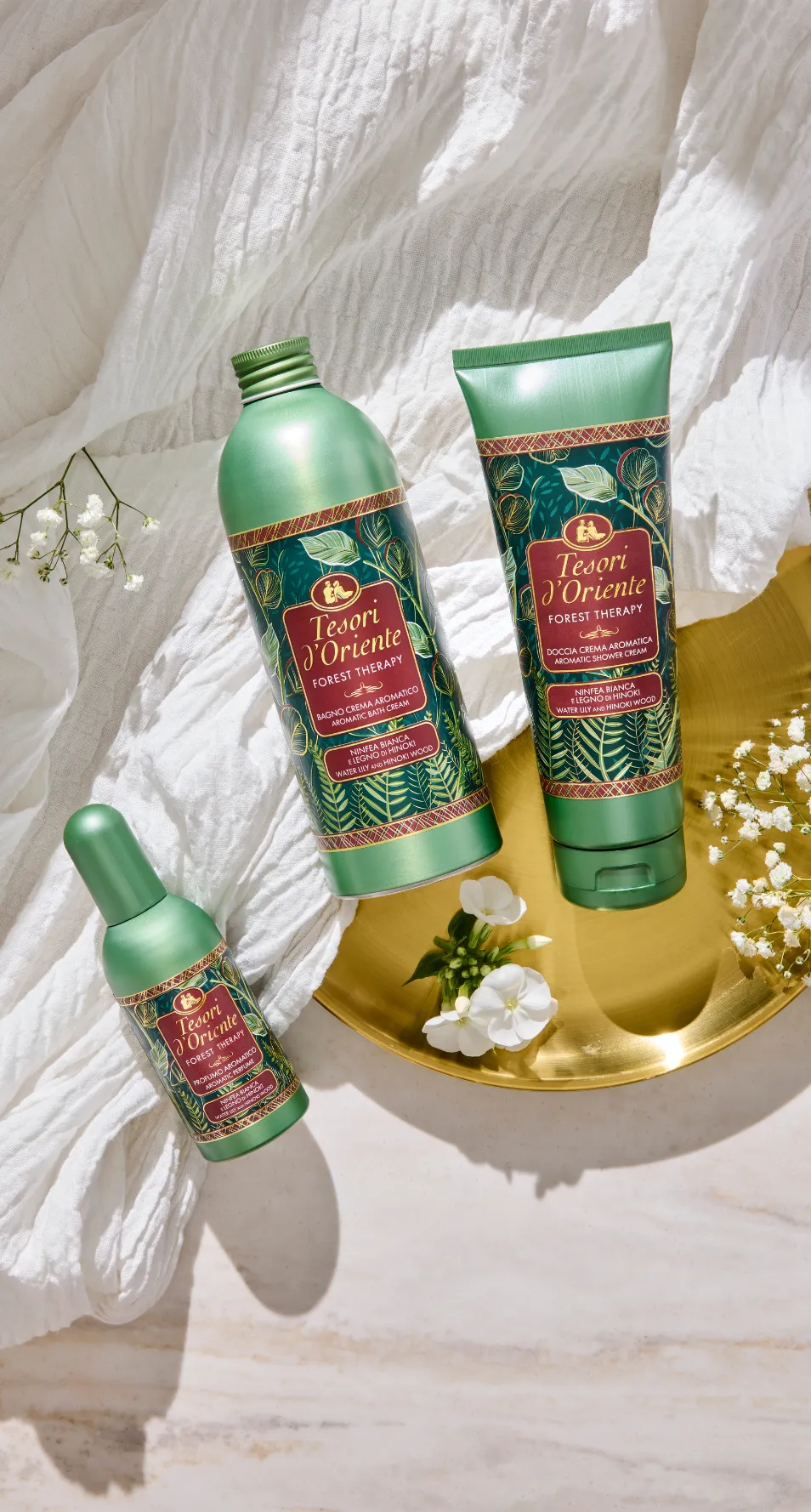 Il profumo è stato arricchito con un particolare accordo aromatico che riproduce gli effetti benefici degli oli essenziali rilasciati dagli alberi, i fitoncidi, per donare un immediato senso di calma e relax.