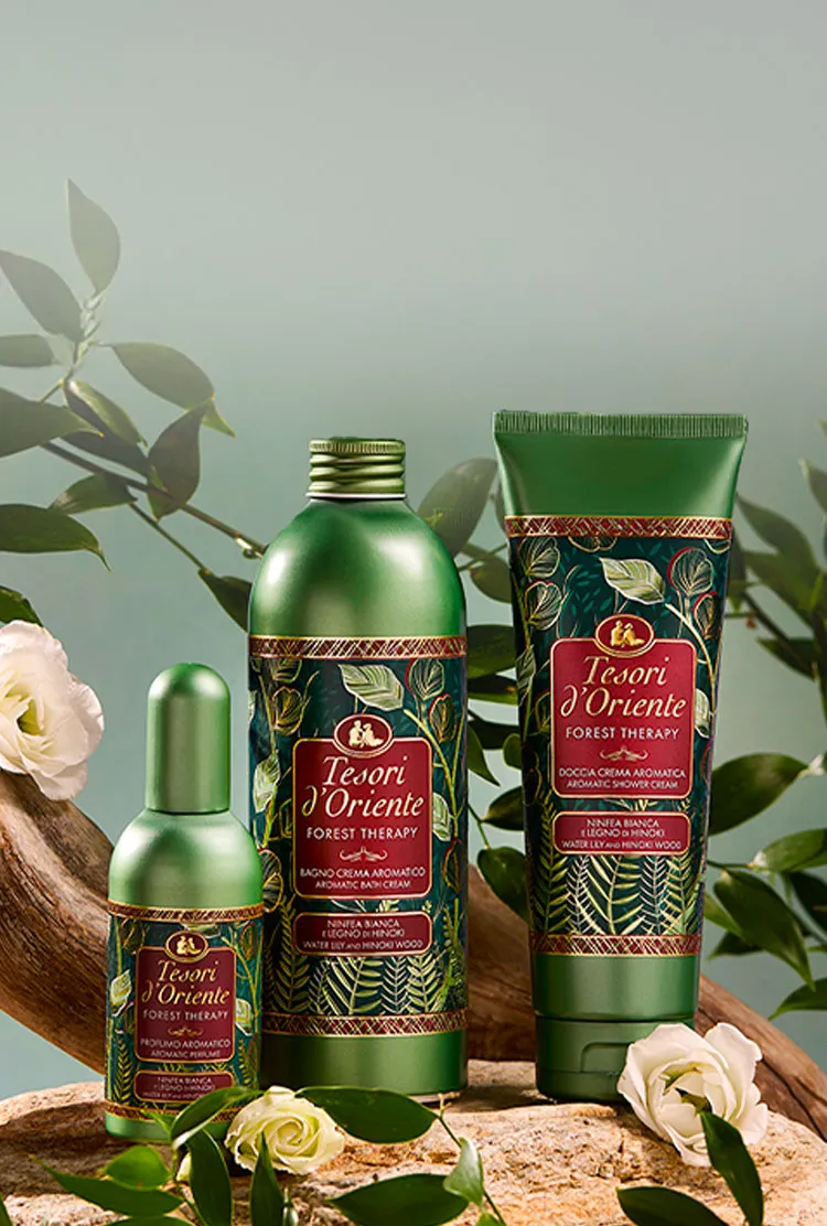 Una fragranza dalle note legnose e agrumate, appositamente studiata per infondere la sensazione di benessere di una tranquilla passeggiata in una verde e lussureggiante foresta.