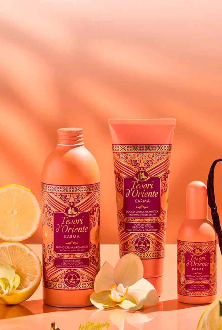 Una fragranza dall’aura solare, avvolgente come i primi raggi di sole primaverili che illuminano i boccioli bianchi del Nashi, pronti a dischiudersi in tutta la loro magnificenza e a sprigionare il loro inebriante aroma. Arricchito con una miscela naturale di oli essenziali, sviluppata utilizzando le neuroscienze applicate, infonde una piacevole sensazione di felicità e buon umore.