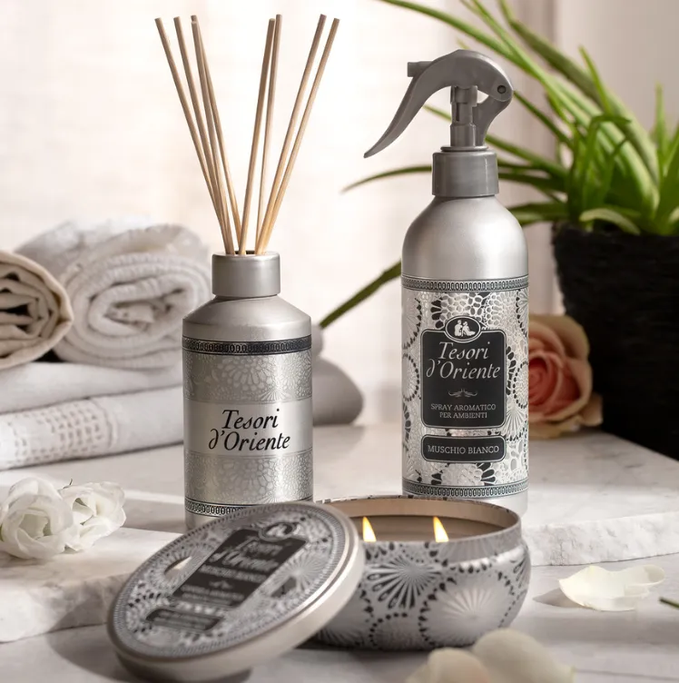 Con poche vaporizzazioni, lo spray aromatico Muschio Bianco rilascia un profumo inebriante e persistente, che dona un’immediata sensazione di benessere e accoglienza.