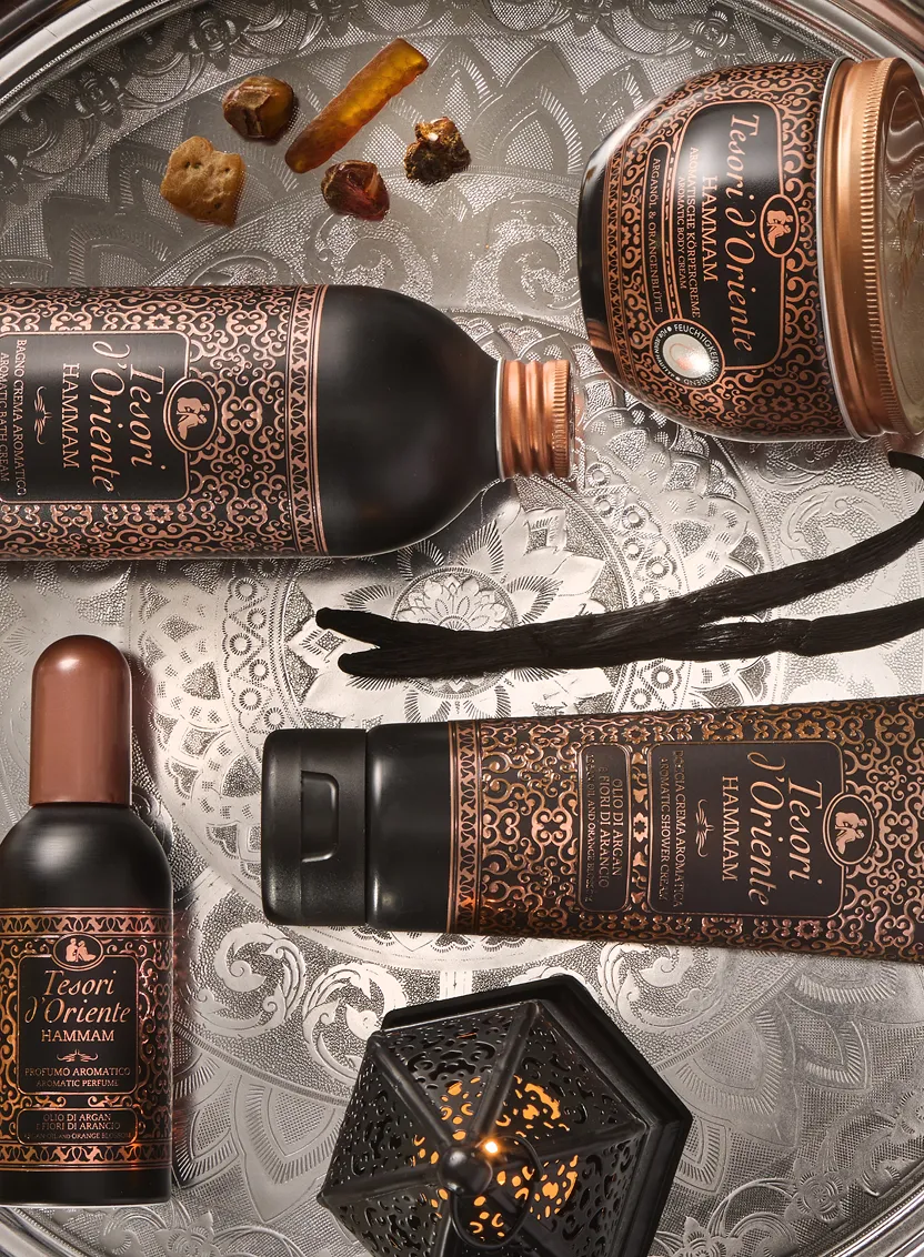 I rituali diventano collezioni: Argan, Ayurveda, Hammam. Ogni fragranza è un rituale di benessere ispirato a culture millenarie.