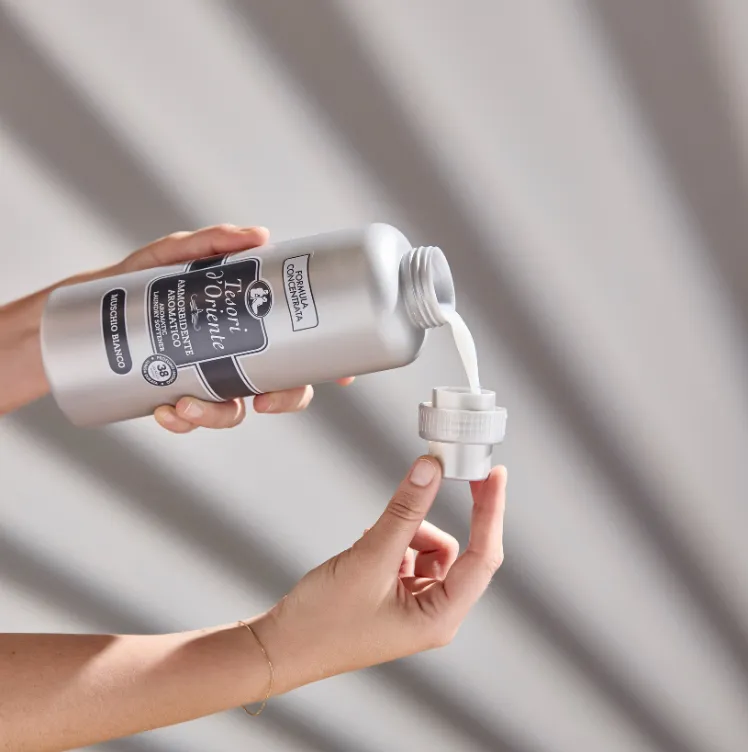 La formula cremosa dell'Ammorbidente Muschio Bianco, priva di coloranti e arricchita con microcapsule profumate, distende i tessuti e ne facilita la stiratura, lasciando una fragranza intensa, elegante e duratura.