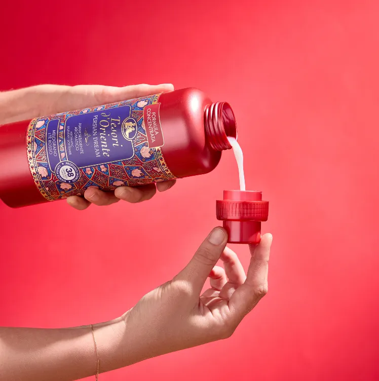 Le note sensuali del Gelsomino e quelle dolci e speziate del Melograno si mescolano ai sentori del Tè Rosso regalando al tuo bucato un profumo fiorito, luminoso e ammaliante. La sua formula cremosa, arricchita con microcapsule e priva di coloranti, distende i tessuti e ne facilita la stiratura.