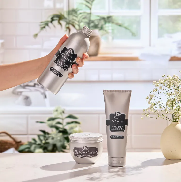 La Crema Corpo Muschio Bianco ha una texture morbida e setosa che accarezza la pelle come un abbraccio delicato.
