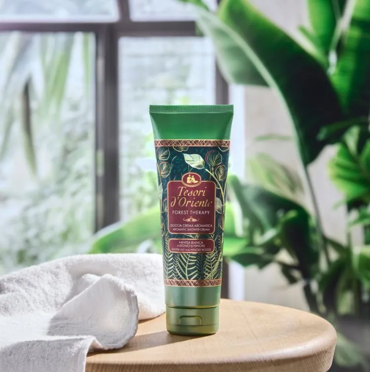 Grazie alle note fresche e delicate della Ninfea Bianca e alle sfumature agrumate e legnose del prezioso Legno di Hinoki, il Doccia Crema Aromatico deterge con dolcezza, regalando alla pelle una carezza vellutata e una profonda sensazione di benessere e relax.
