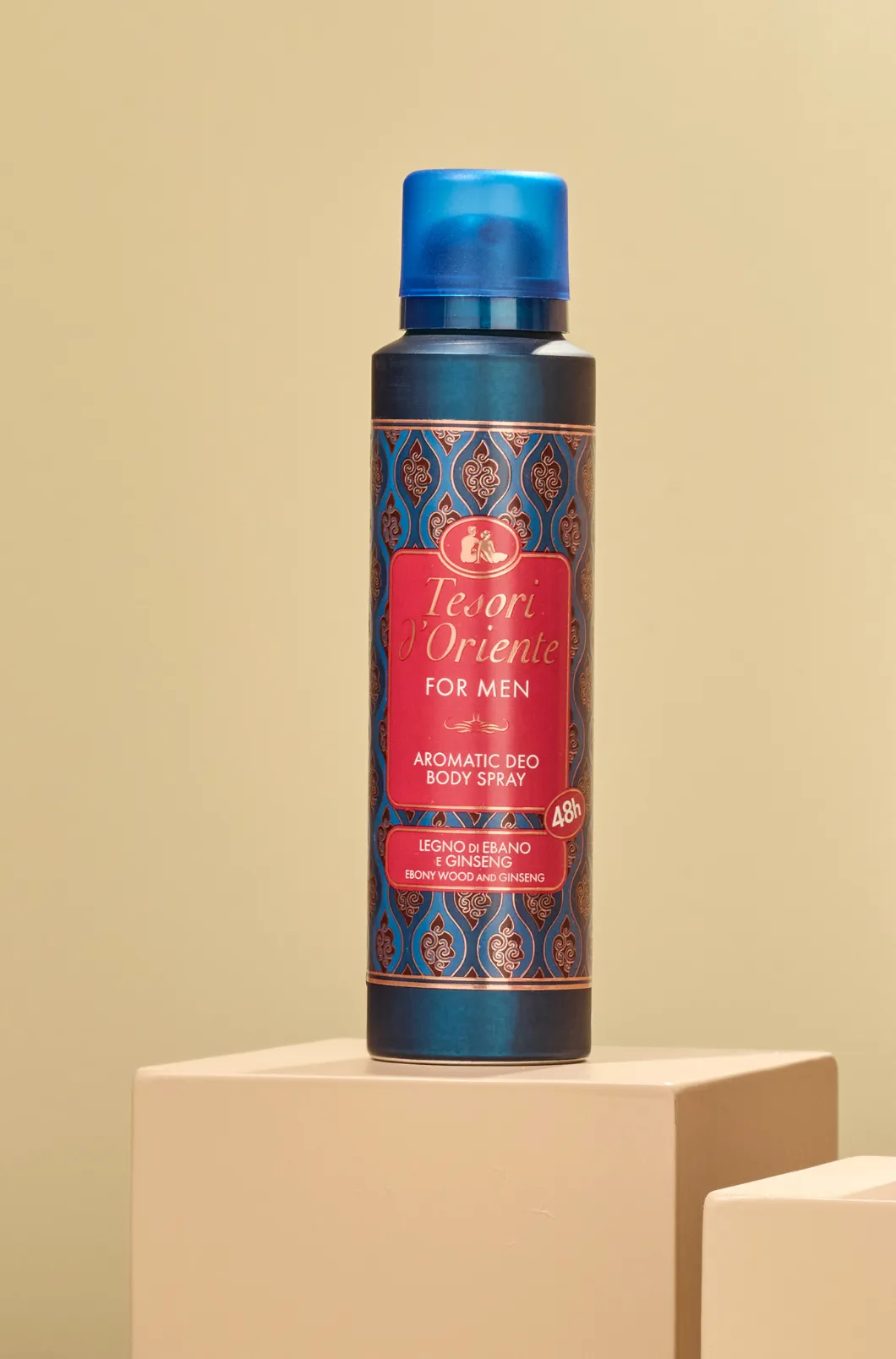 An Aromatic Deo Body Spray with a bold, modern character that combines the strength of Ebony Wood with the invigorating energy of Ginseng. Its enhanced formula provides 48 hours of protection, an intense and long-lasting fragrance, and the added benefit of being suitable for use on the entire body.
