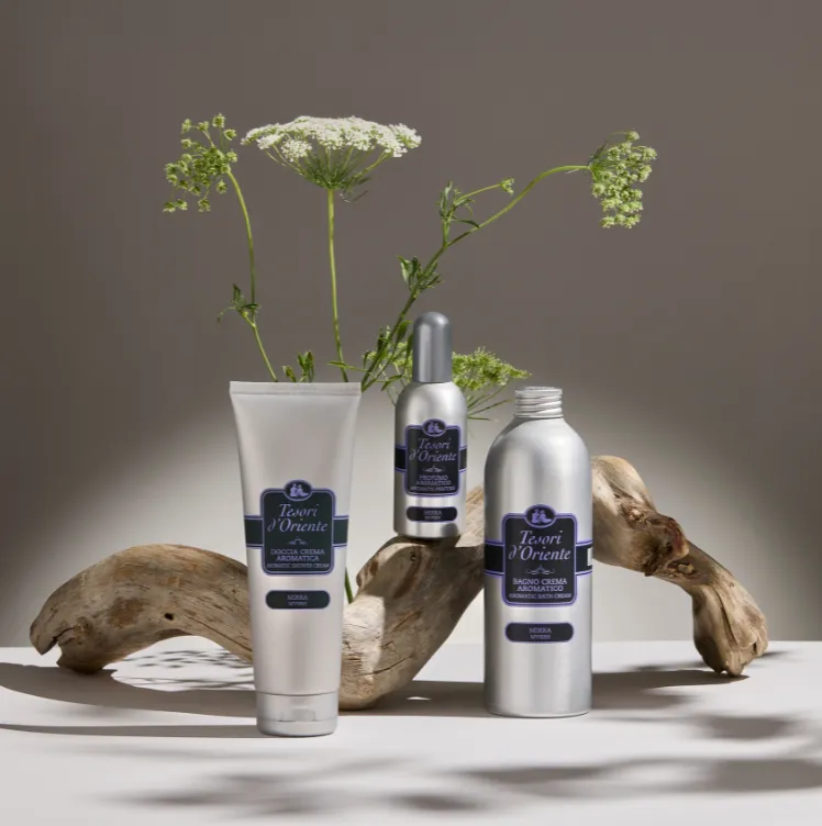 Una delicata fragranza orientale che evoca atmosfere di tempi e terre lontane, avvolgendo il corpo in un’esotica carezza profumata. Sin dalla notte dei tempi, la mirra è considerata un dono prezioso e raro, riservato ai re e ai rituali sacri più importanti. Protagonista di questo rituale dalle virtù rigeneranti, dona alla pelle morbidezza e una sensazione di benessere profondo, risvegliando emozioni antiche e suggestioni senza tempo.