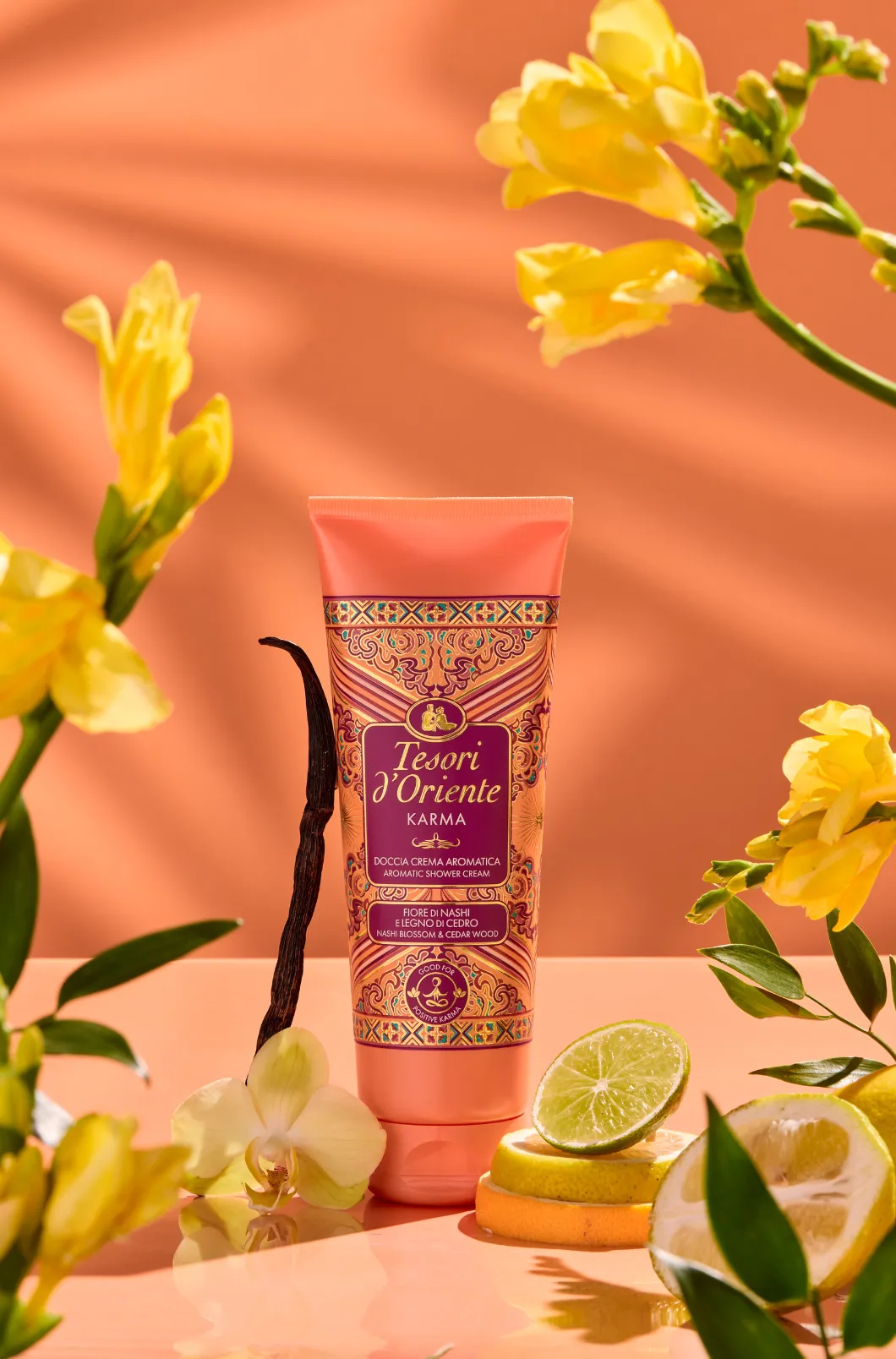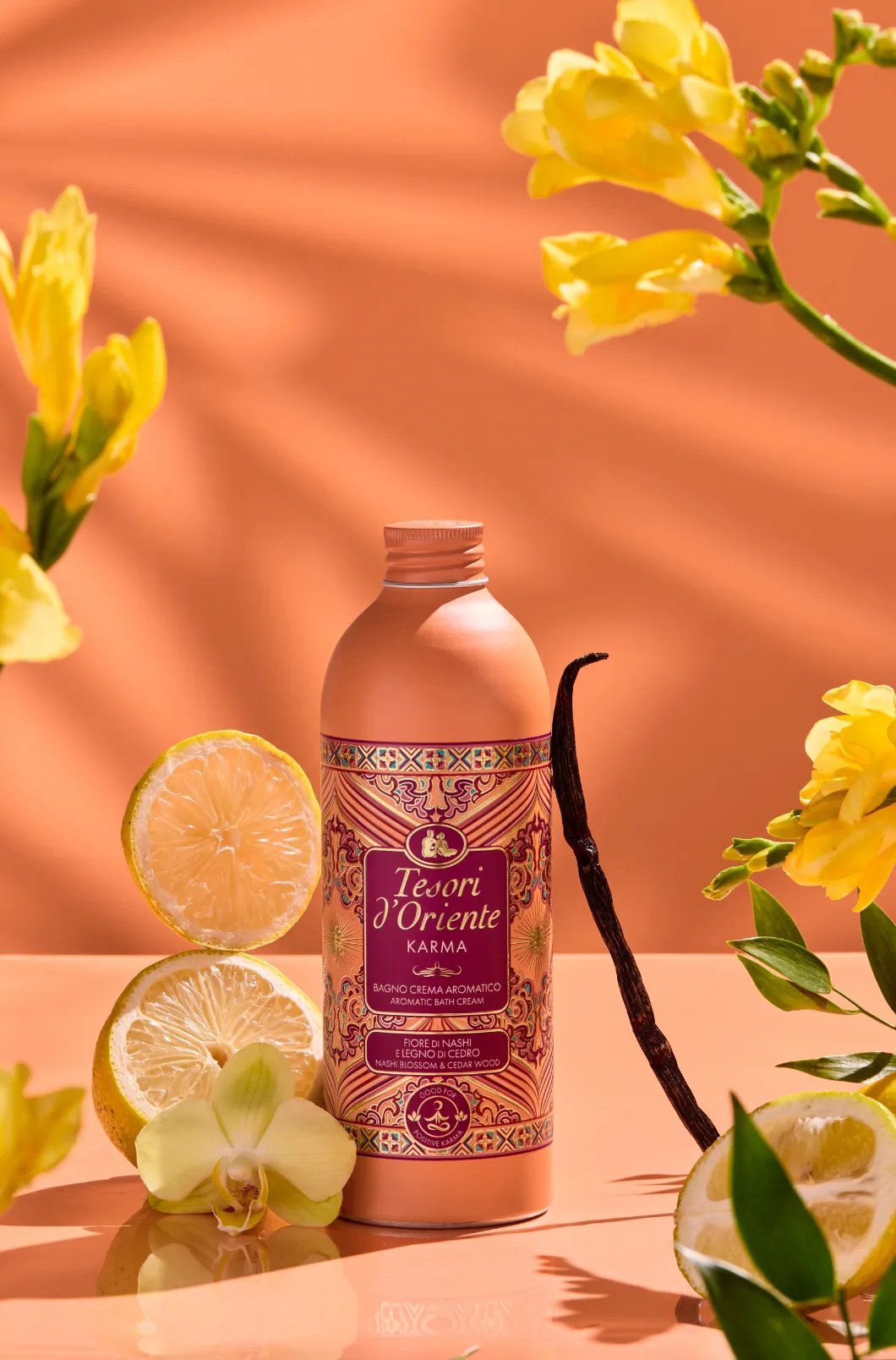 Una fragranza dall’aura solare, avvolgente come i primi raggi di sole primaverili che illuminano i boccioli bianchi del Nashi, pronti a dischiudersi in tutta la loro magnificenza e a sprigionare il loro inebriante aroma. Arricchito con una miscela naturale di oli essenziali, sviluppata utilizzando le neuroscienze applicate, infonde una piacevole sensazione di felicità e buon umore.